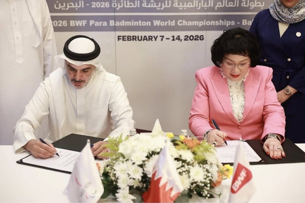 في إنجاز تاريخي للمنطقة العربية، أعلنت مملكة البحرين عن استضافتها لبطولة العالم البارالمبية للريشة الطائرة 2026، والتي ستُقام في العاصمة المنامة خلال الفترة من 7 إلى 14 فبراير 2026، لتكون بذلك أول دولة في الشرق الأوسط تنال شرف تنظيم هذا الحدث العالمي الكبير. وجاء الإعلان عقب توقيع اتفاقية الاستضافة بين سعادة الشيخ محمد بن دعيج آل خليفة، رئيس اللجنة البارالمبية البحرينية، والسيدة Khunying Patama Leeswadtrakul، رئيسة الاتحاد الدولي للريشة الطائرة (BWF)، وذلك بحضور عدد من ممثلي اللجان البارالمبية والاتحاد الدولي.